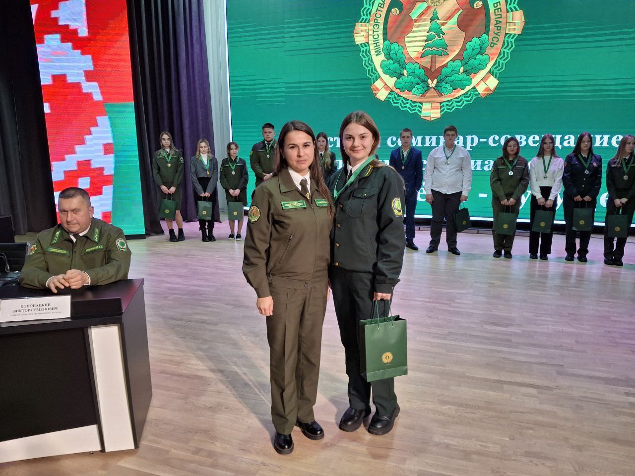 Участие от Кобринского опытного лесхоза принимали КУЛЬЧИНСКАЯ Дарья, мастер леса Дивинского опытно-производственного лесничества, КОНОНЮК Виктория, егерь, и СОКОЛЮК Дарья, мастер леса на лесосеках лесопункта.