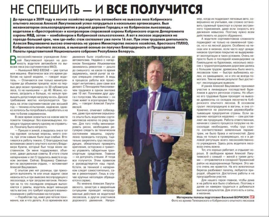 Алексей ЛАТИЕВСКИЙ - водитель автомобиля на вывозке леса лесопункта.