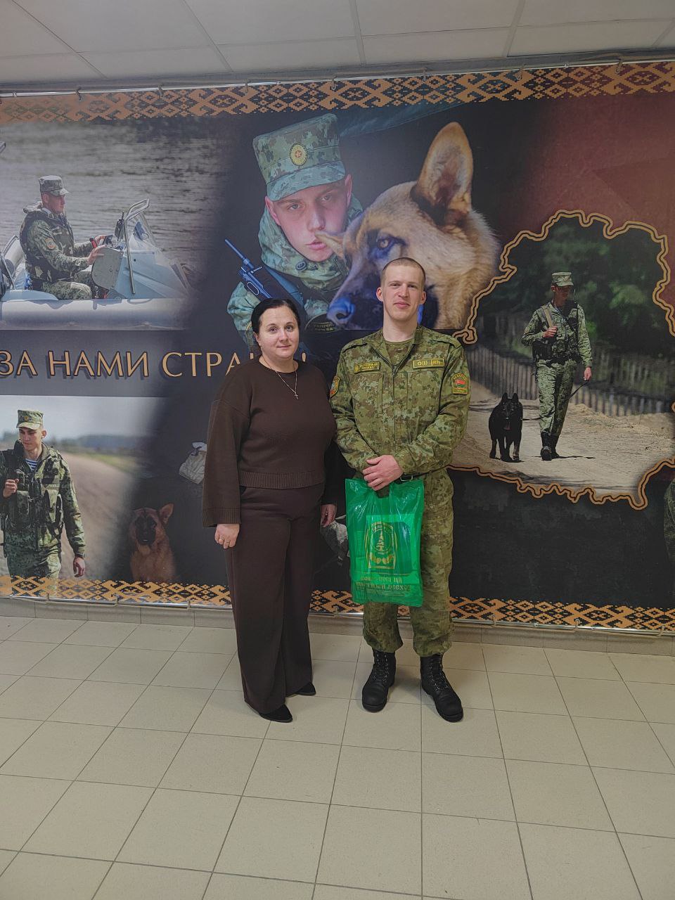 В преддверии Дня защитников Отечества и Вооружённых Сил Республики Беларусь заместитель руководителя организации по идеологической работе Кобринского опытного лесхоза Екатерина КОРГАН навестила нашего молодого коллегу Даниила СВИДУНОВИЧА, который сейчас служит в армии. До службы Даниил работал мастером леса в Петровичском лесничестве.