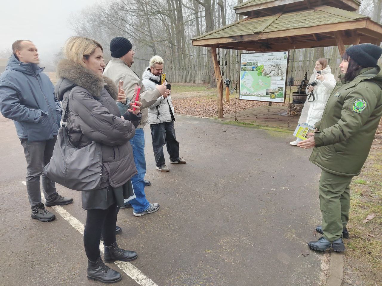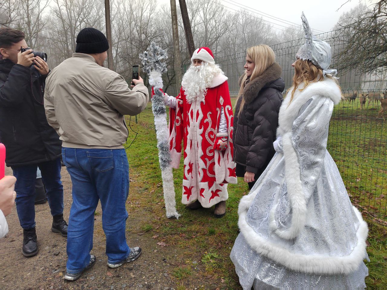 Пул блогеров встречал Дед Мороз со Снегурочкой, после чего их ждала увлекательная экскурсия по станциям экологической тропы.